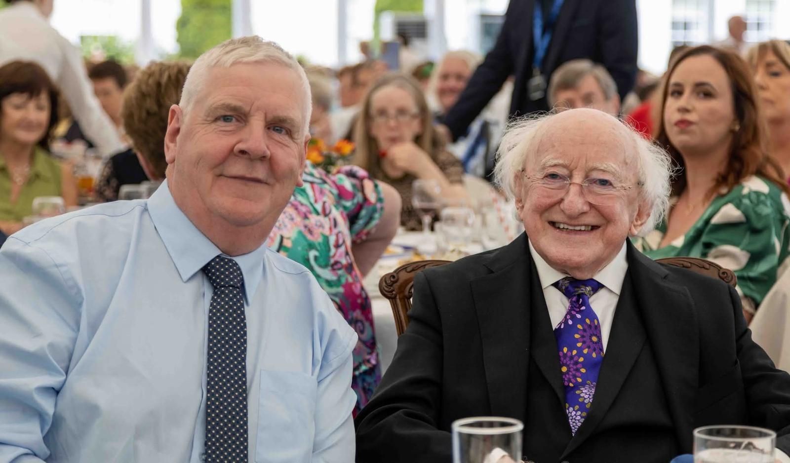 Our own johnny b broderick (John Broderick) had the honour of sitting with President of Ireland / Uachtarán na hÉireann Michael D. Higgins at a Community Garden Party.
